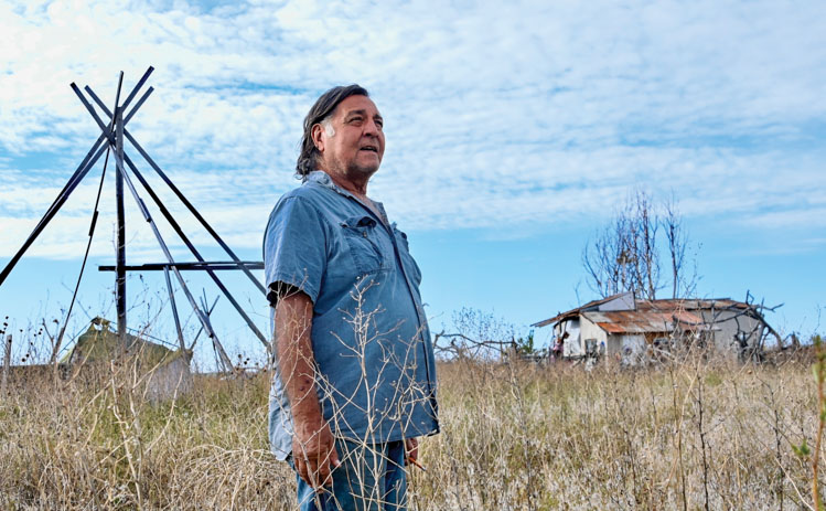 Pine Ridge artist Randall Blaze hurried home from a grocery trip to Rapid City on an April evening in 2020 because he was eager to watch a TV documentary on Ernest Hemingway. Blaze lit a candle and set it on the arm of an upholstered chair. The next thing he knew, the chair was a ball of fire and within minutes the entire house was burning.