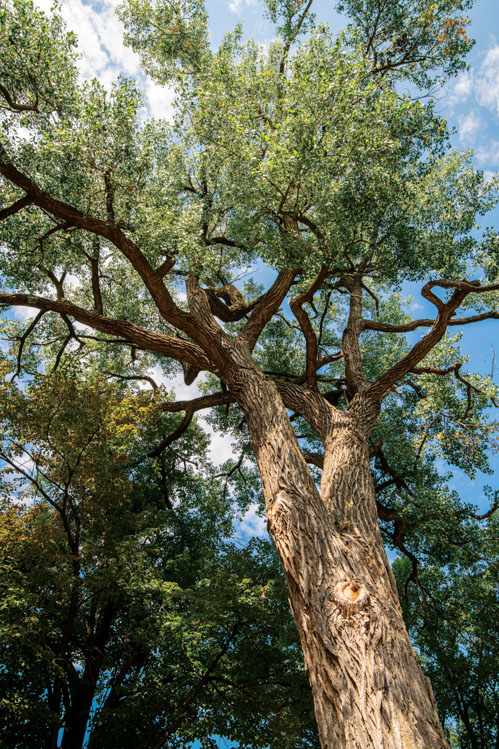 When settlers first arrived in Dakota, they would have seen a nearly treeless landscape, other than the occasional willow, elm, ash, box elder and the cottonwoods growing in the river valleys. “Cottonwoods are so towering and large, and they’ll grow in wet, boggy areas,” DeJong says. “They could be several miles away and see these stands of cottonwood trees in the distance and know that there was likely water nearby.”