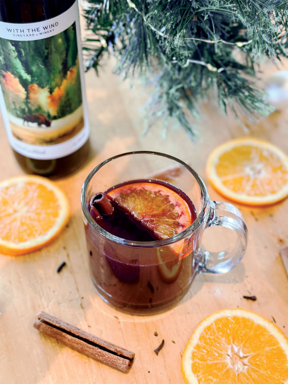 Lisa Klein, who owns With The Wind along with her husband, Jeremiah, uses their Sacred Solitude wine for mulling. Made with locally grown Frontenac grapes, this dry red is complemented by Lisa’s recipe that includes orange juice and brown sugar.