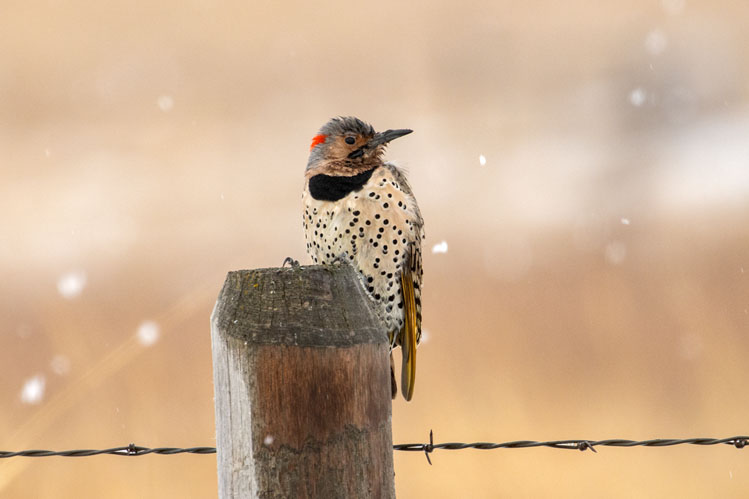 Snow flurries in rural Deuel County slowed a small flock of flicker woodpeckers arriving from warmer climates.