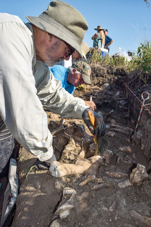 | Dean Lockner found bison bones, estimated to be nearly 1,000 years old, protruding from a ridge of soil in 2011. Each season of erosion and excavation reveals more at the site. |