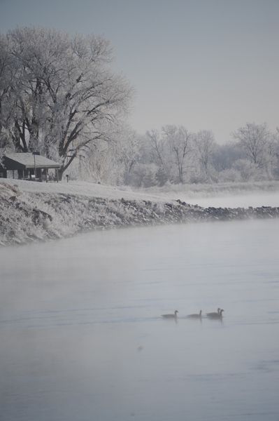 Even in subzero temperatures the Missouri River remains open for waterfowl.