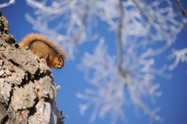 This squirrel was chattering nonstop. Perhaps the cold bothered him, too.
