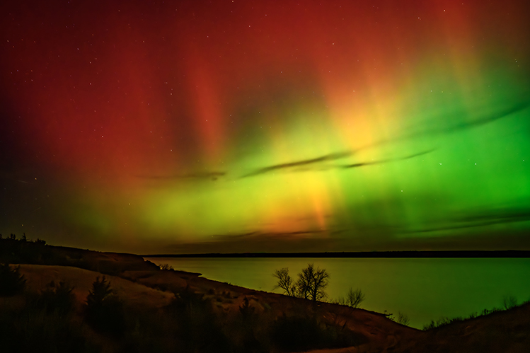 The Northern lights shimmer above Lake Oahe near Pierre. Photo by Chad Coppess -