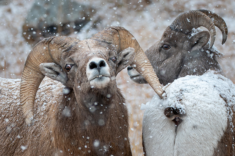 Bighorn sheep enjoying the fresh snow in Custer State Park. Photo by Gerald Huebert -