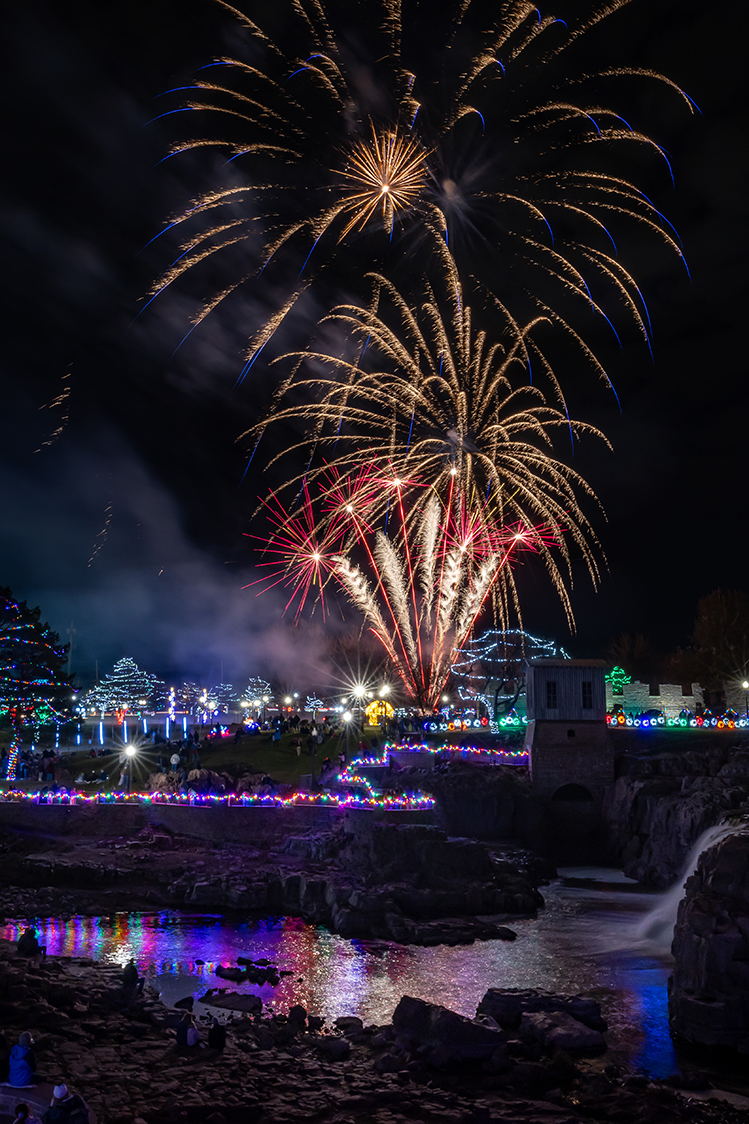 Fireworks from atop the Falls Park Visitors Center in Sioux Falls. Photo by Sharla Van Wettering -