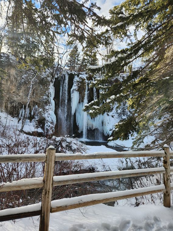 Spearfish Falls partially iced over on a chilly day. Photo by Kim Spiering -
