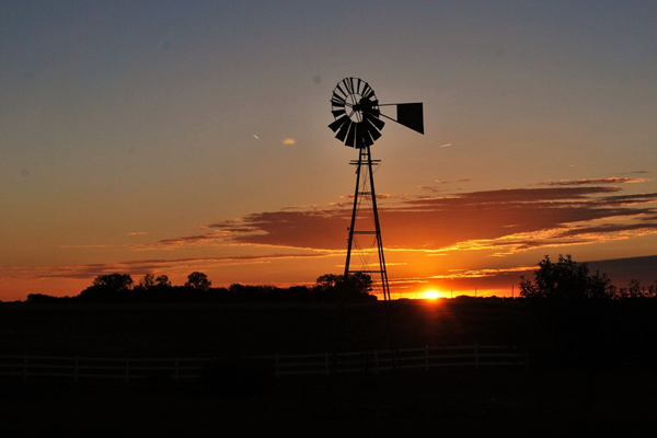 The sun sets on Ron and Sue Weeldreyer's farm near Bridgewater.